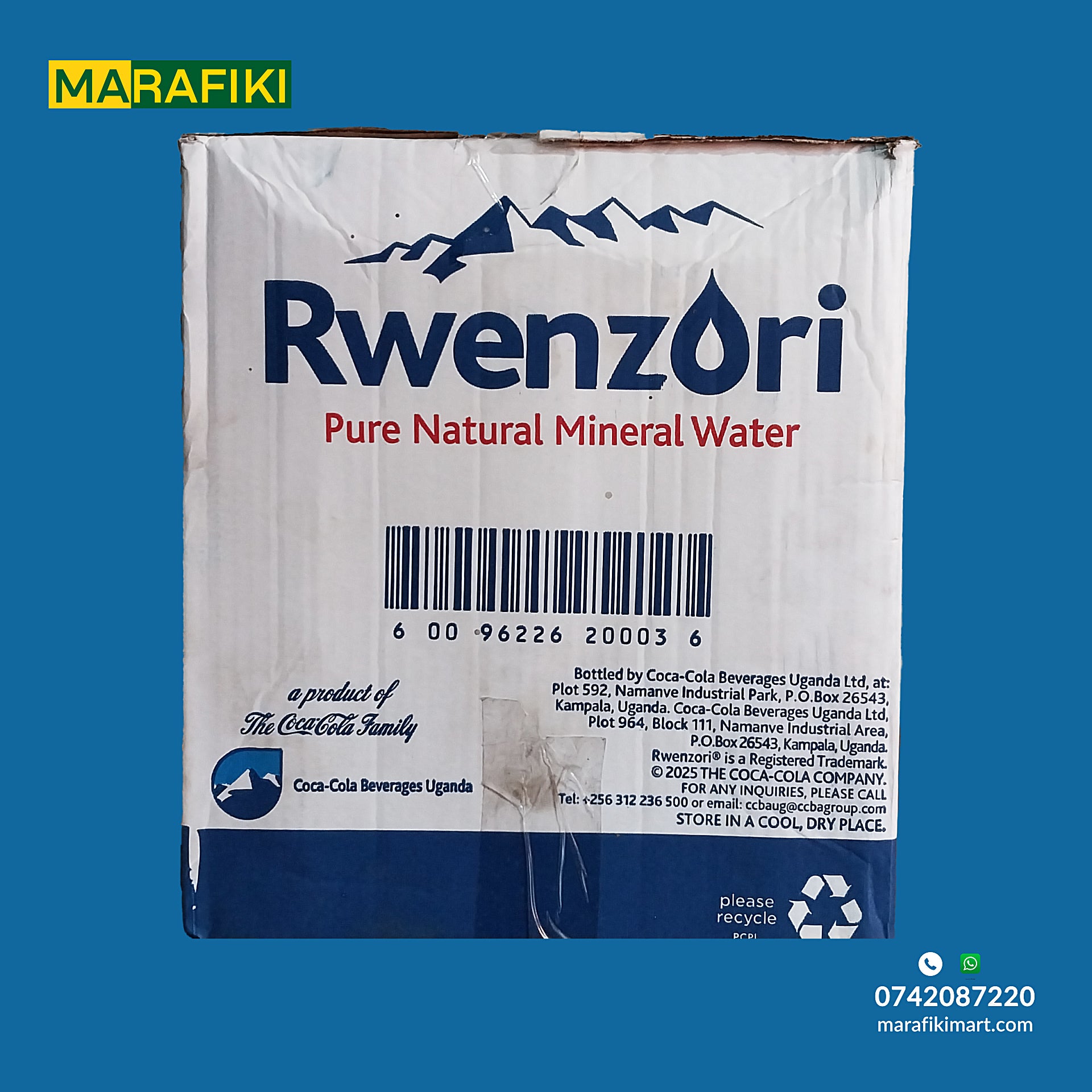 A box of Rwenzori water containing 12 bottles of 1.5L each